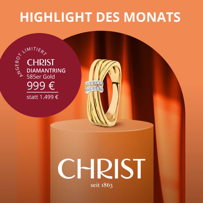 christdieser diamantring bringt zusammen, was zusammengehört: warmes gelbgold und das kühle, unwiderstehliche funkeln von brillanten. dabei hat christ den dreh für ein ausgefallenes design im wahrsten sinne des wortes raus: an den „ringen am ring“ ziehen je 9 brillanten alle blicke auf sich. artikel: christ diamantring preis: 999 € statt 1.499 € zeitraum: 01.12. – […]01.12.2025 bis 31.12.2025Christ